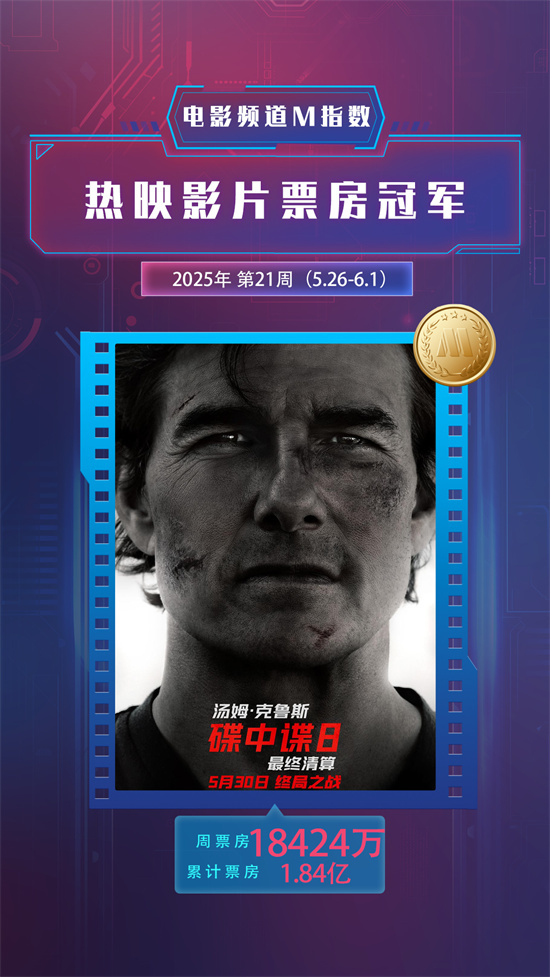 电影频道M指数2025年21周(5.26-6.1)结果发布