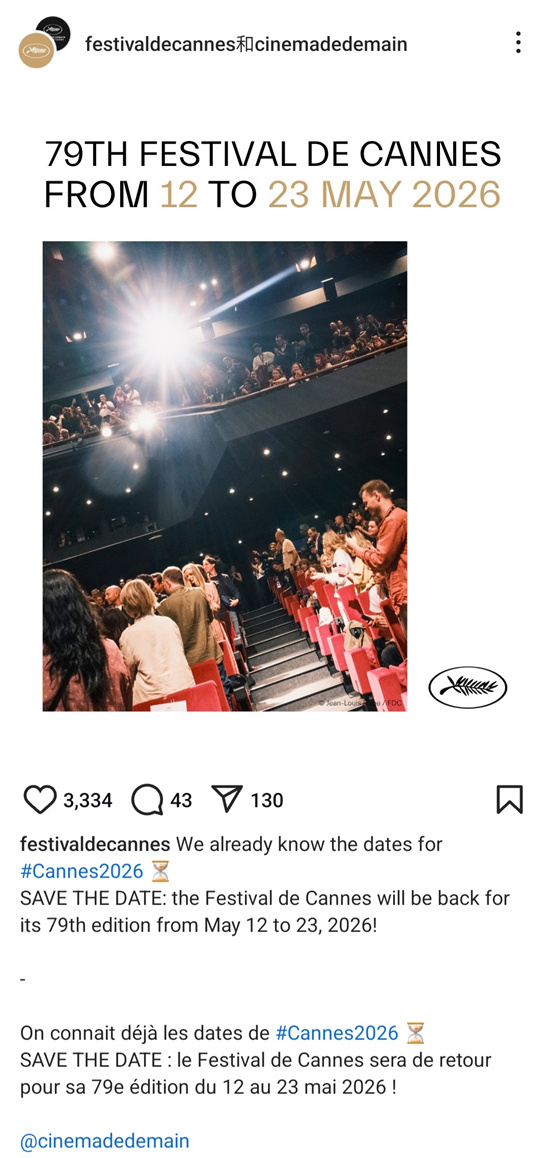 第79届戛纳电影节时间确定!将于2026.5.12-23举行