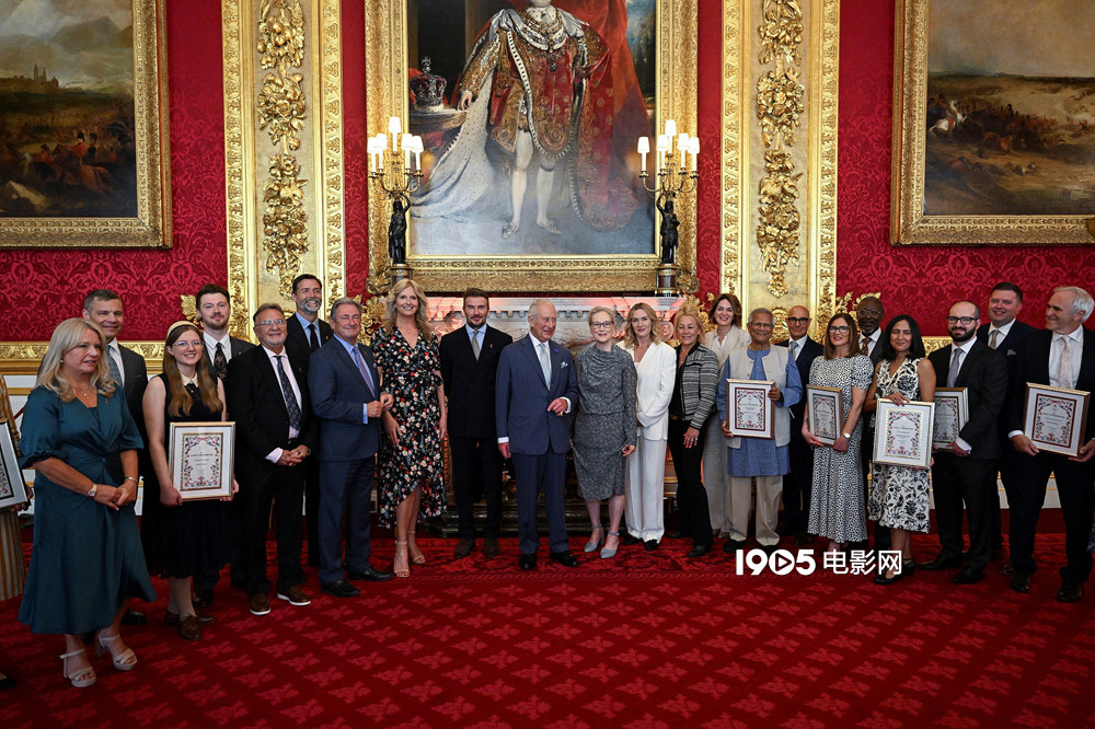 1905电影网讯 当地时间6月12日,英国伦敦,圣詹姆斯宫,英国国王查尔斯三世出席国王基金会成立35周年颁奖典礼,演员“梅姨”梅丽尔·斯特里普、凯特·温斯莱特和前足球运动员大卫·贝克汉姆在旁。